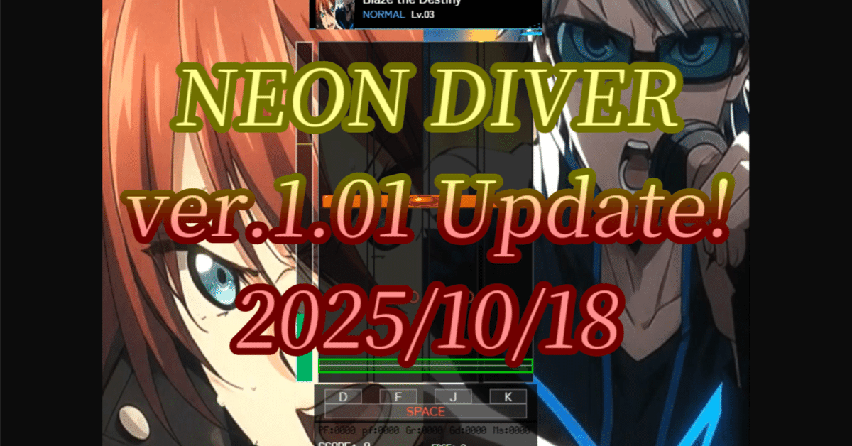 AI制作音ゲー「NEON DIVER」Ver.1.01公開!